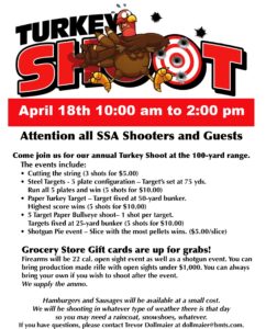 Home Events - Sydenham Sportsmen Association .22 Cal Precision Turkey Shoot – 100 Yard Range Local Time Timezone: America/New_York Date: Apr 18 2026 Time: 10:00 am - 2:00 pm Date Apr 18 2026 Time 10:00 am - 2:00 pm .22 Cal Precision Turkey Shoot – 100 Yard Range