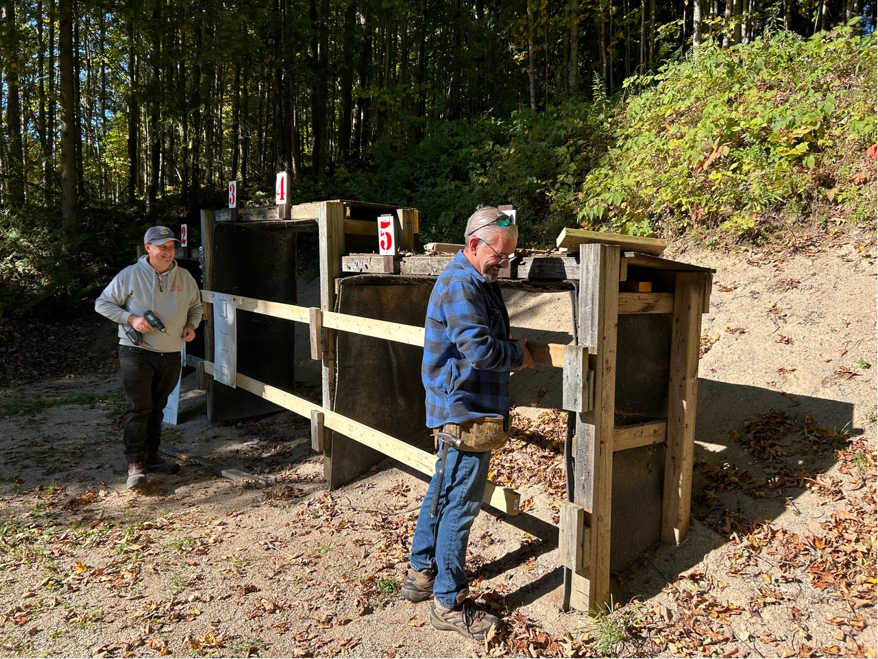 Work included: repairing back-stop structures, replacing target backers, sandbag replacement and UV Protection upgrade, removing trash and rubble found in among the trees, making lane markers, repainting ceasefire lines and removing trees that represented hazards to our members and the public.
